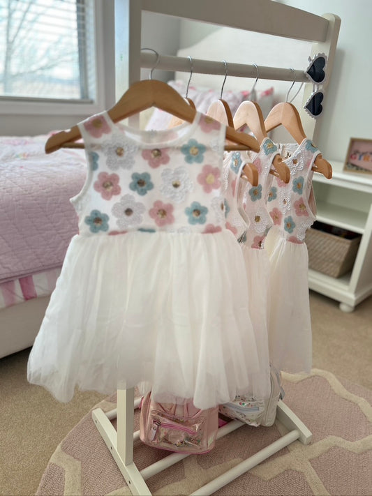 Robin's Egg Blue Confetti Flower Dress - Kids Easter Dress